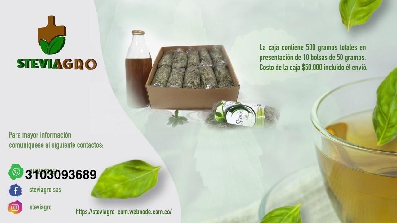 Vendemos cajas de 500gr en presentación de 10 bolsas de 50 gramos, para realizar su infusión, mantenerla en la nevera y endulzar al gusto.